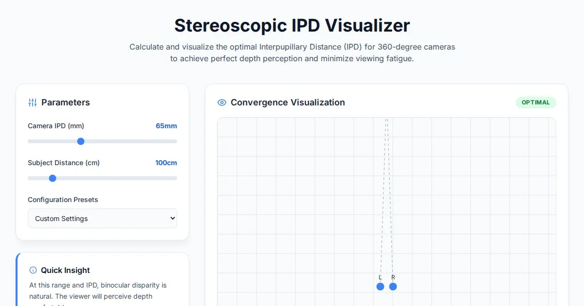 Accurately calculate and visualize stereoscopic IPD for 360 cameras. Optimize your VR content depth and comfort with our free, browser-based IPD simulation tool.