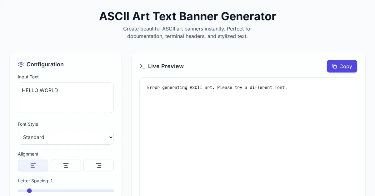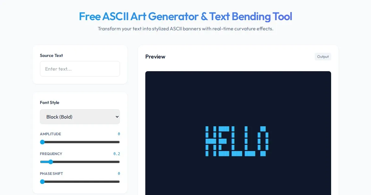 Create stunning ASCII art with our free online text bending tool. Easily generate stylized, curved text banners for code, terminals, and design projects.