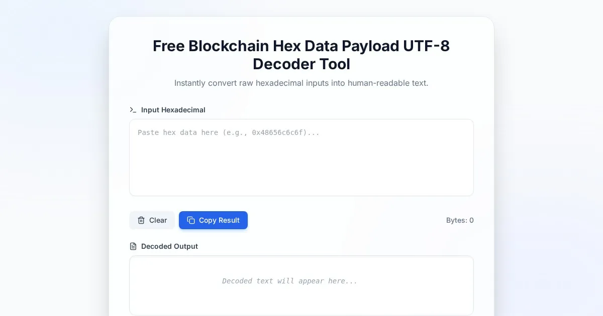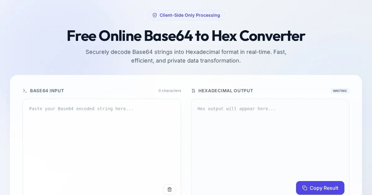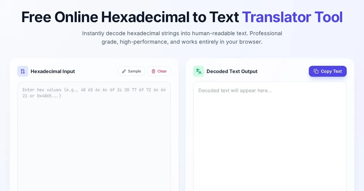 Effortlessly convert hexadecimal codes into plain text strings. Our free online hex decoder tool provides instant results without any file uploads or storage.
