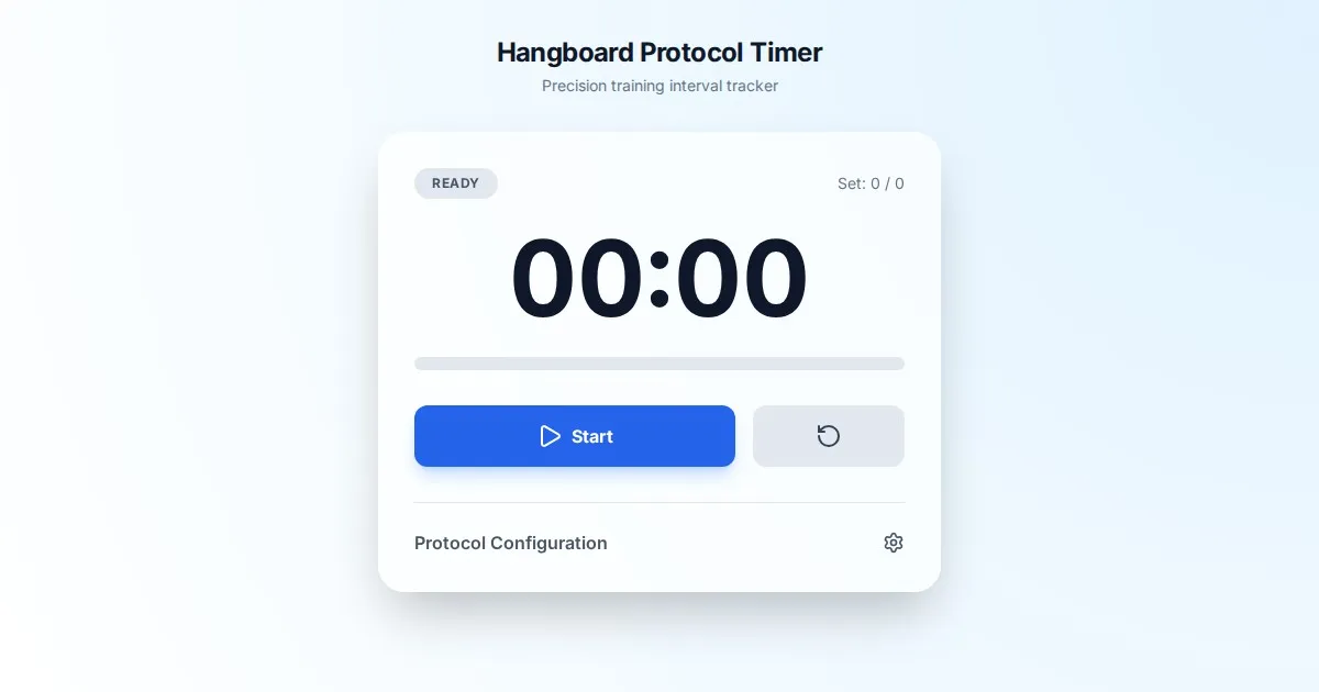 Improve finger strength with our free hangboard protocol timer. Supports custom deadhang, repeater, and max hang intervals with precise audio cues.