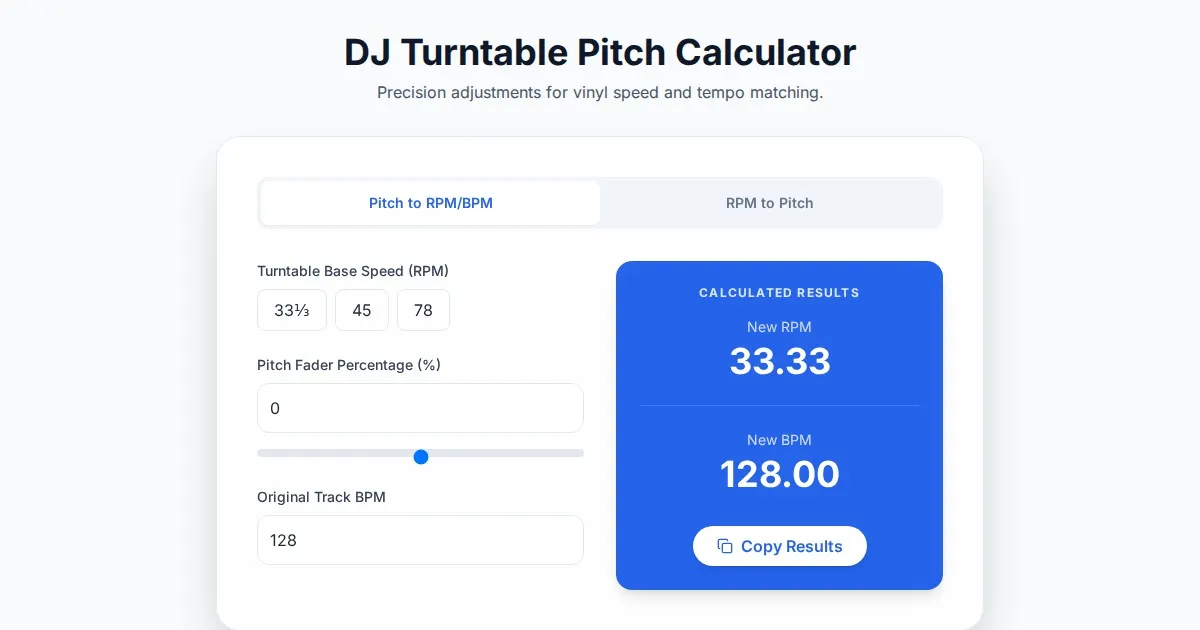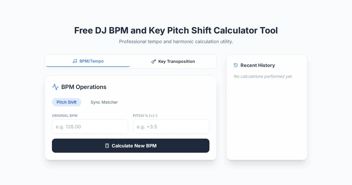 Calculate BPM changes and musical key transpositions instantly. A professional, browser-based tool for DJs to match tracks, adjust pitch percentages, and master beatmatching.