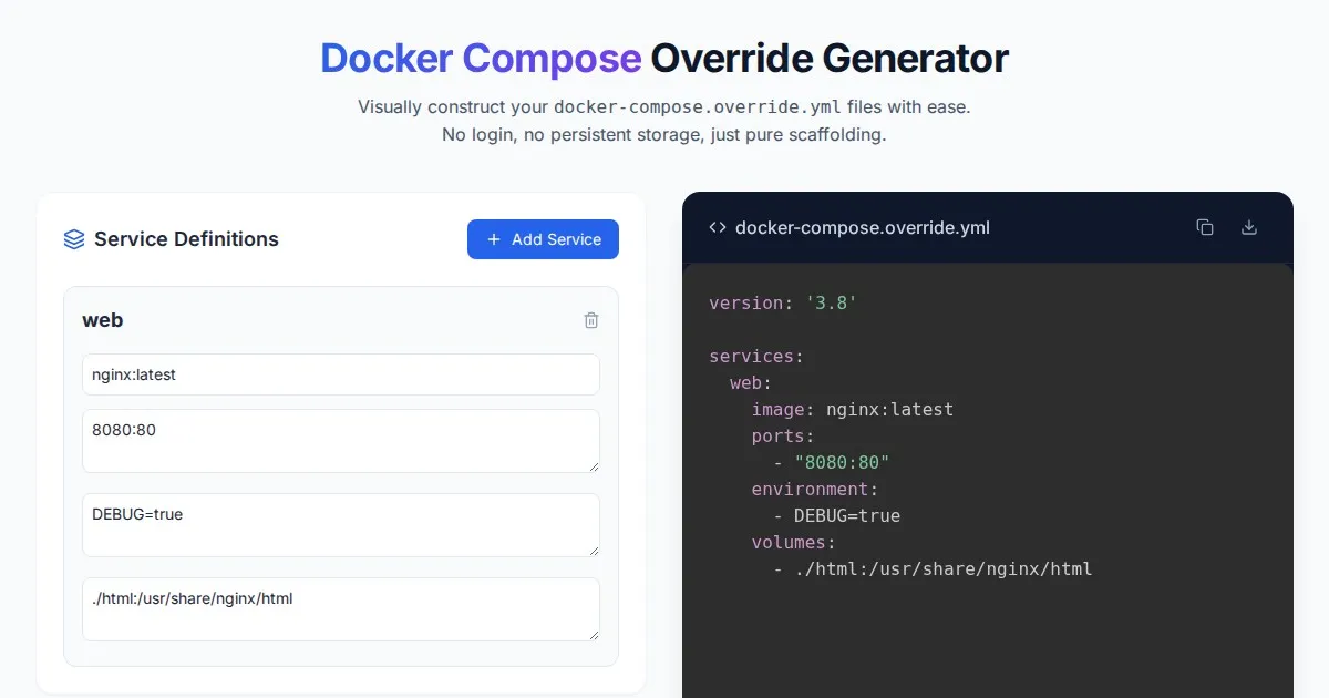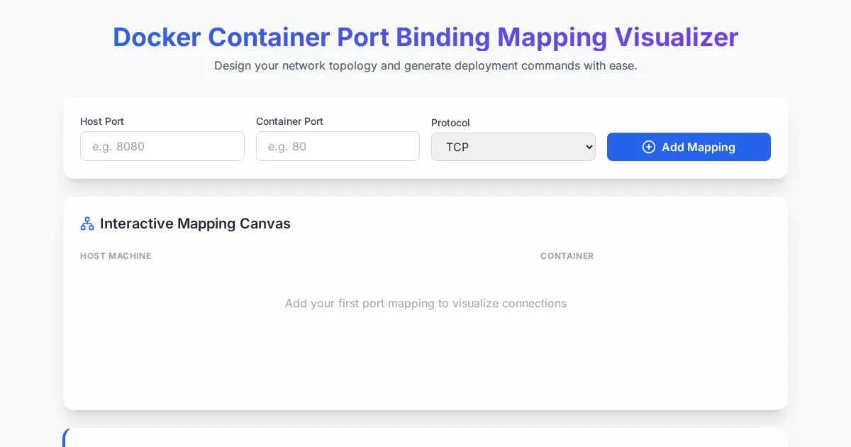 Easily visualize and manage Docker container port mappings with our free tool. Map host ports to container ports, troubleshoot network conflicts, and generate valid Docker CLI commands.