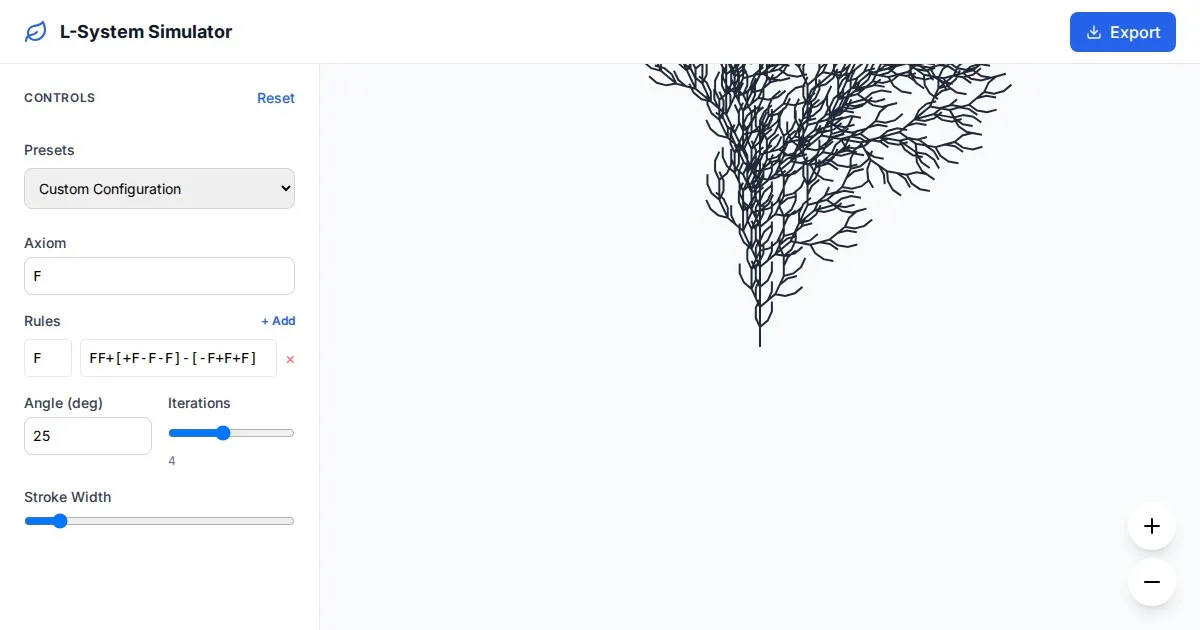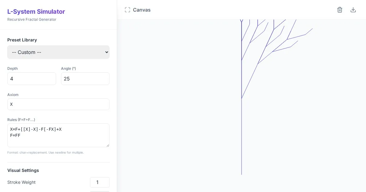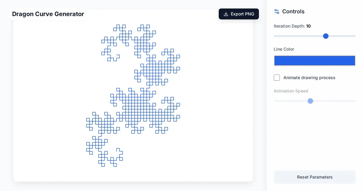 Visualize complex Dragon Curve fractal patterns with this free interactive L-System generator. Adjust iterations, line colors, and speed for stunning geometry.