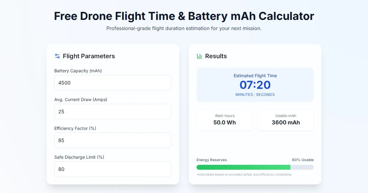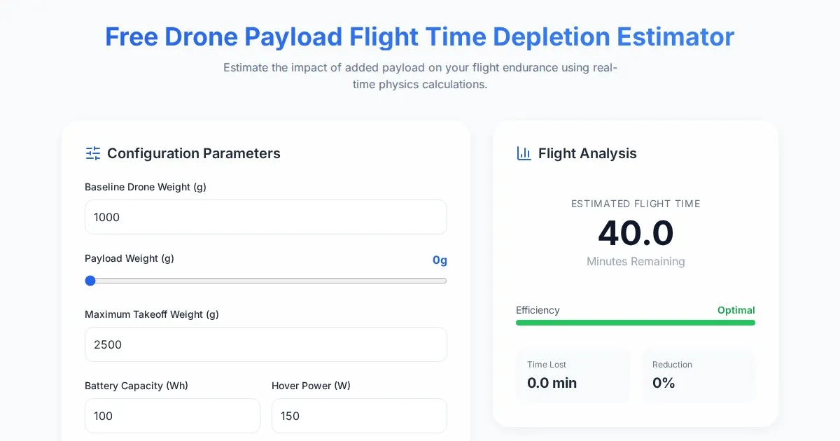 Calculate your drone's flight time depletion based on payload weight. Estimate battery life, power consumption, and hover time for safer UAV operations.