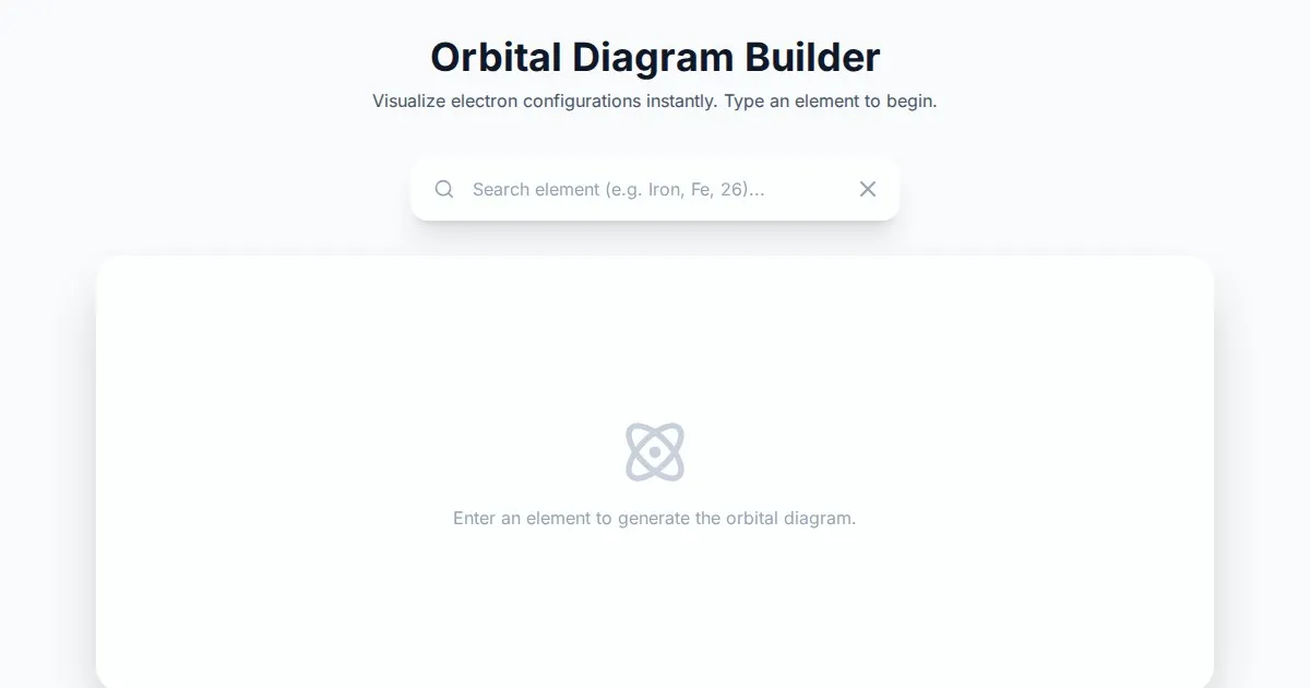Generate accurate electron configuration orbital diagrams online. Visualize atomic orbital filling patterns, Aufbau principle, and Hund's rule for chemistry study.