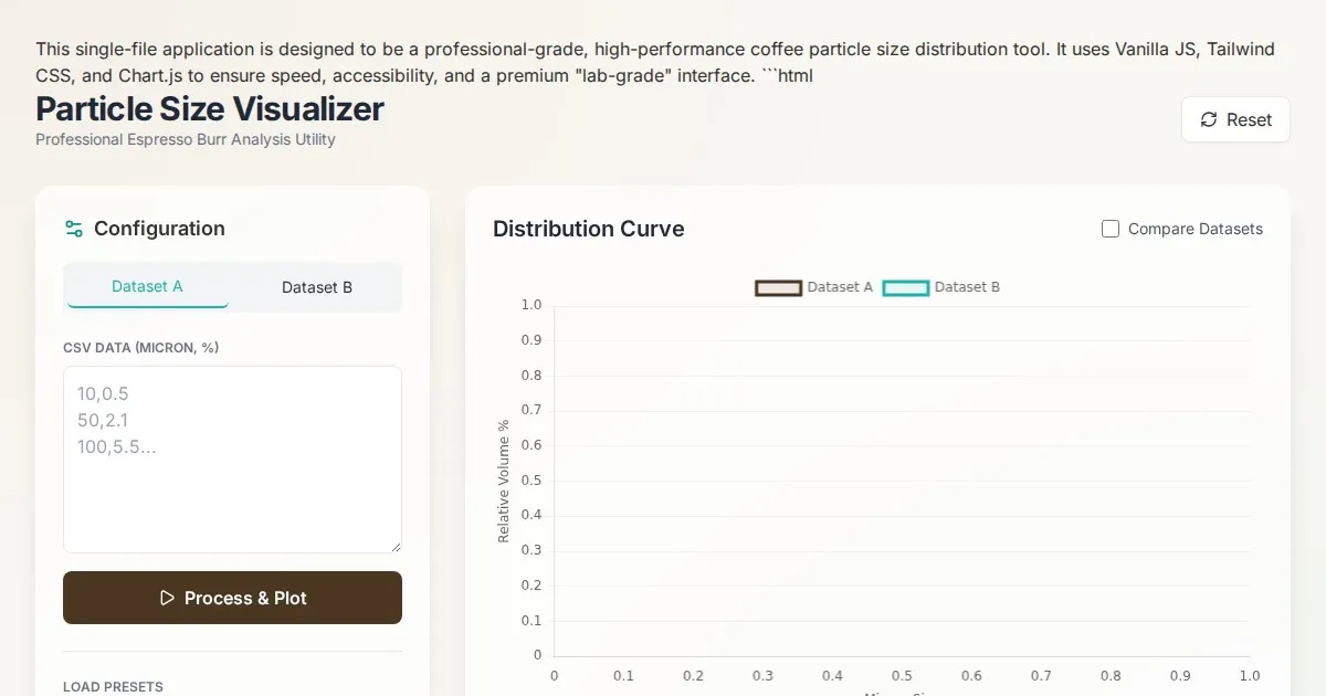 Analyze coffee grind consistency with our free particle size distribution visualizer. Compare conical and flat burr grinders for optimal espresso extraction.