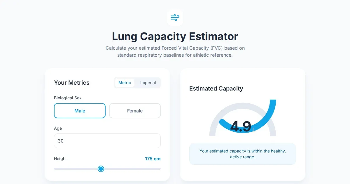 Accurately calculate your Predicted Forced Vital Capacity (FVC) for freediving. Use our free tool based on height, age, and gender to track respiratory health.