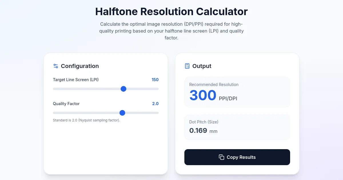 Calculate the perfect image resolution for print projects. Our free LPI to DPI/PPI converter ensures high-quality prepress output without moiré patterns.