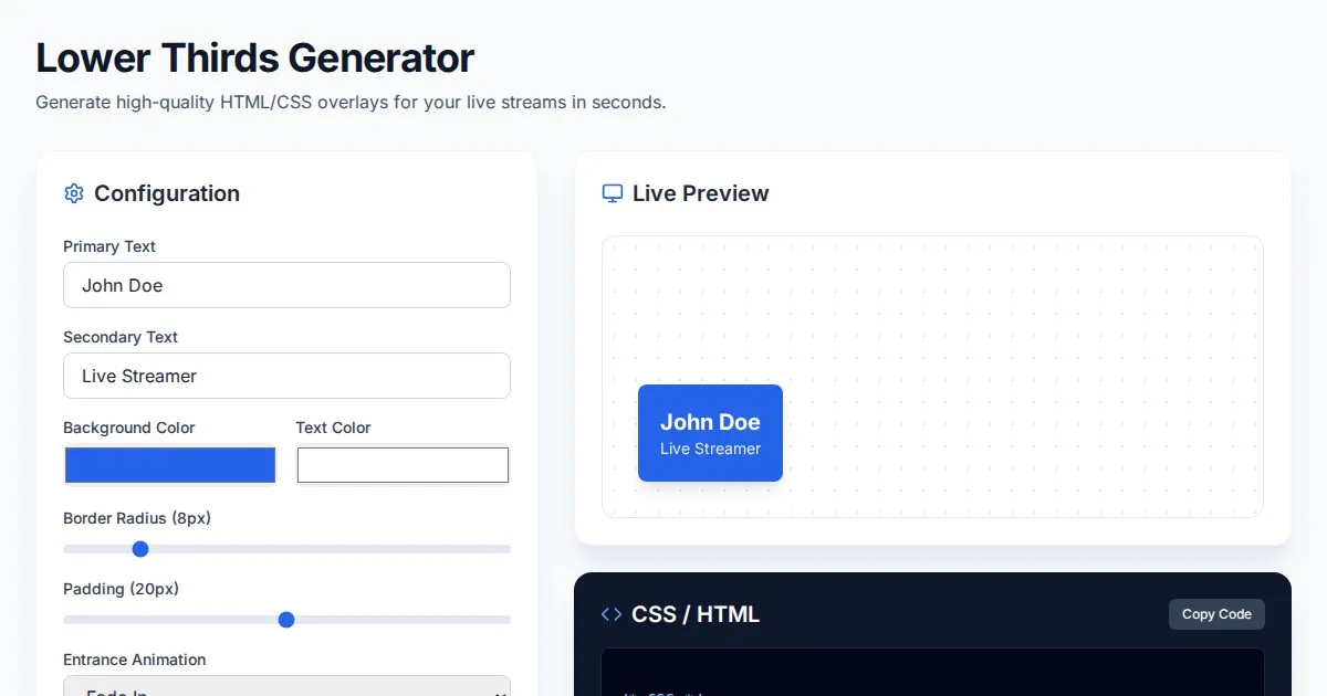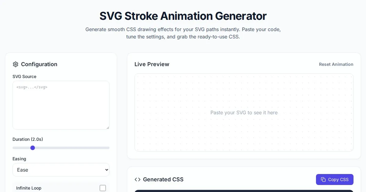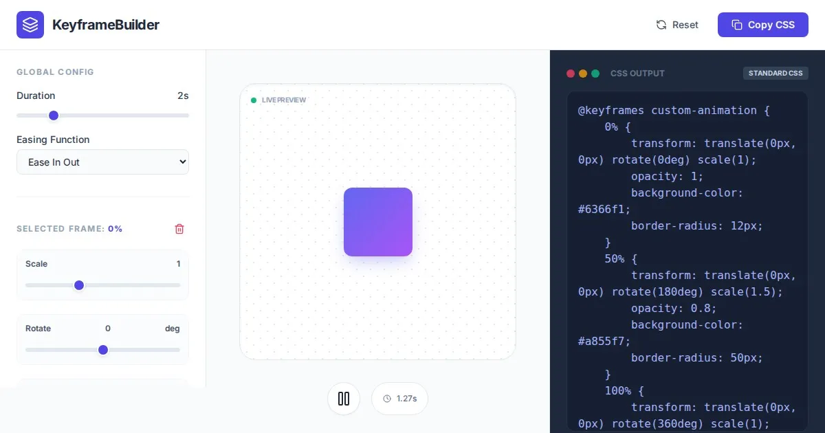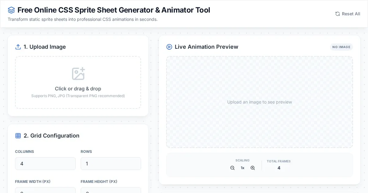 Easily generate CSS sprite sheets and frame-by-frame animations. Upload your image, set frame dimensions, and export clean, ready-to-use CSS code instantly.