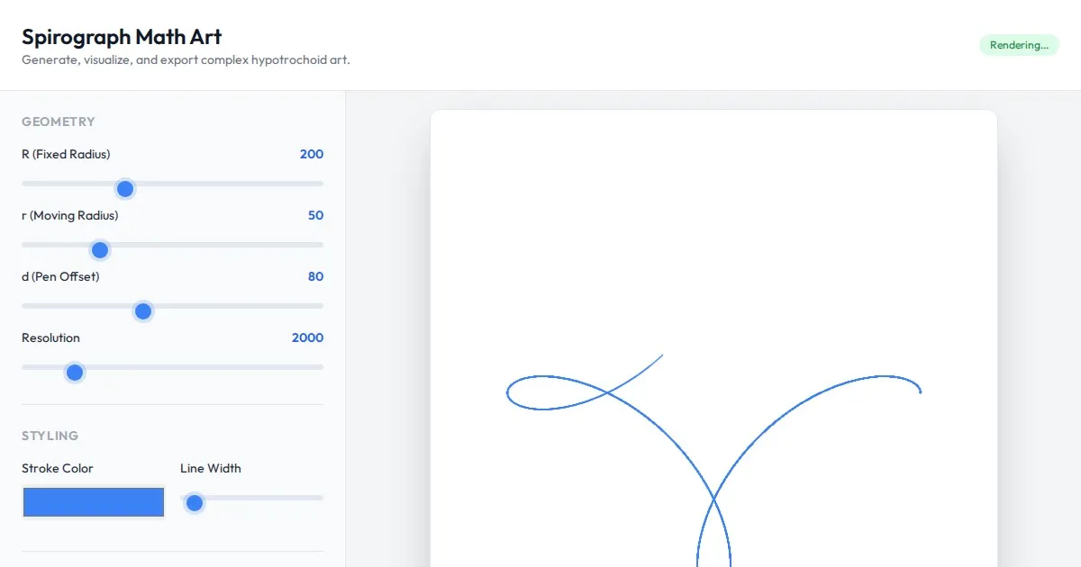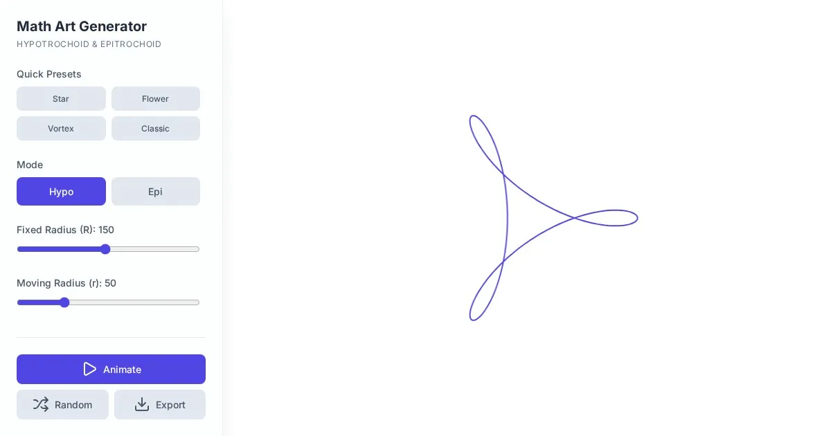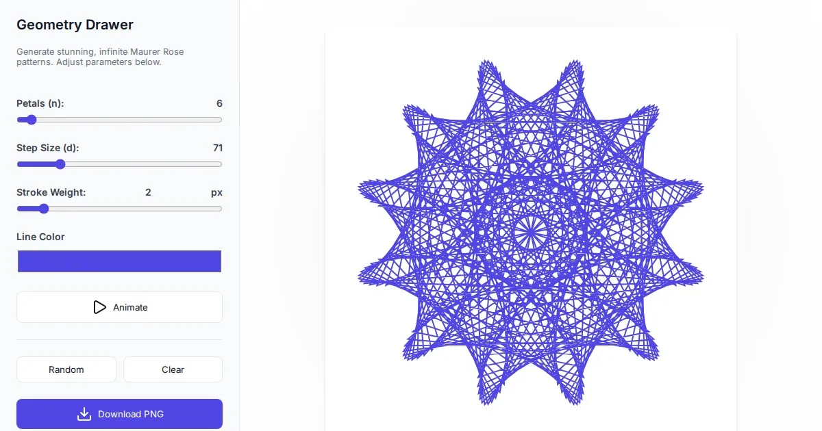 Generate complex geometric patterns with this free interactive Maurer Rose and spirograph canvas tool. Perfect for creating mathematical art in your browser.