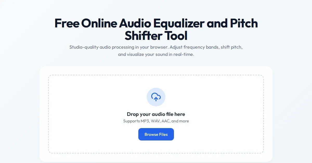Adjust audio frequencies, pitch, and playback speed instantly in your browser with this free online audio equalizer. No server uploads or registration needed.