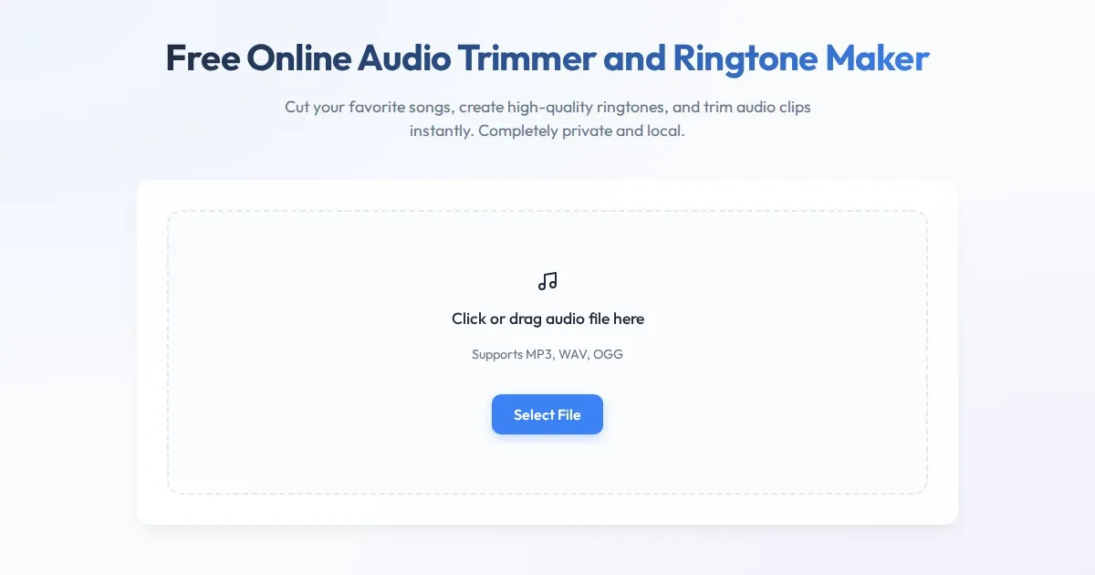 Easily trim audio files and create custom ringtones directly in your browser. Fast, private, and free online audio cutter with no uploads required.