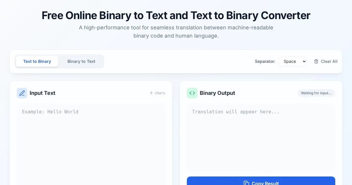 Convert binary code to readable text or encode plain text into binary strings instantly with this free, secure, browser-based online binary converter tool.