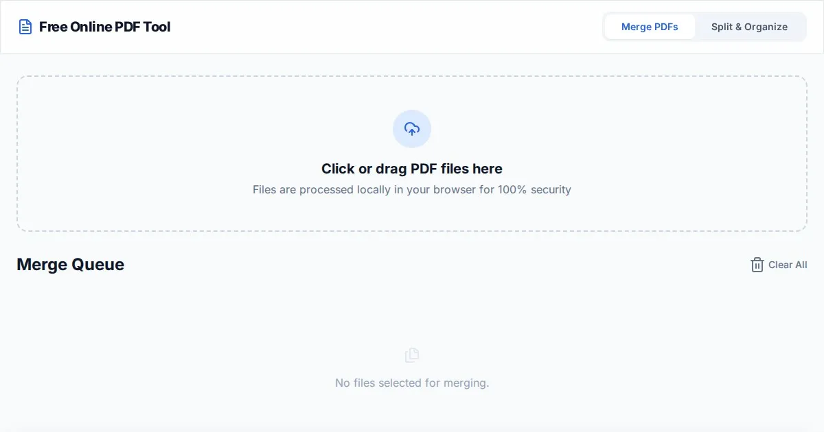 Securely merge, split, and reorganize PDF documents directly in your browser. No server uploads, 100% private, fast, and free PDF management tool.