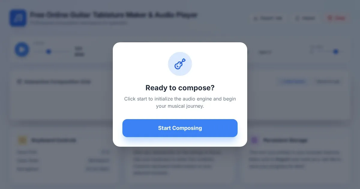 Create, edit, and play your own guitar tablature arrangements with this free, interactive, browser-based guitar tab maker. No installation required.
