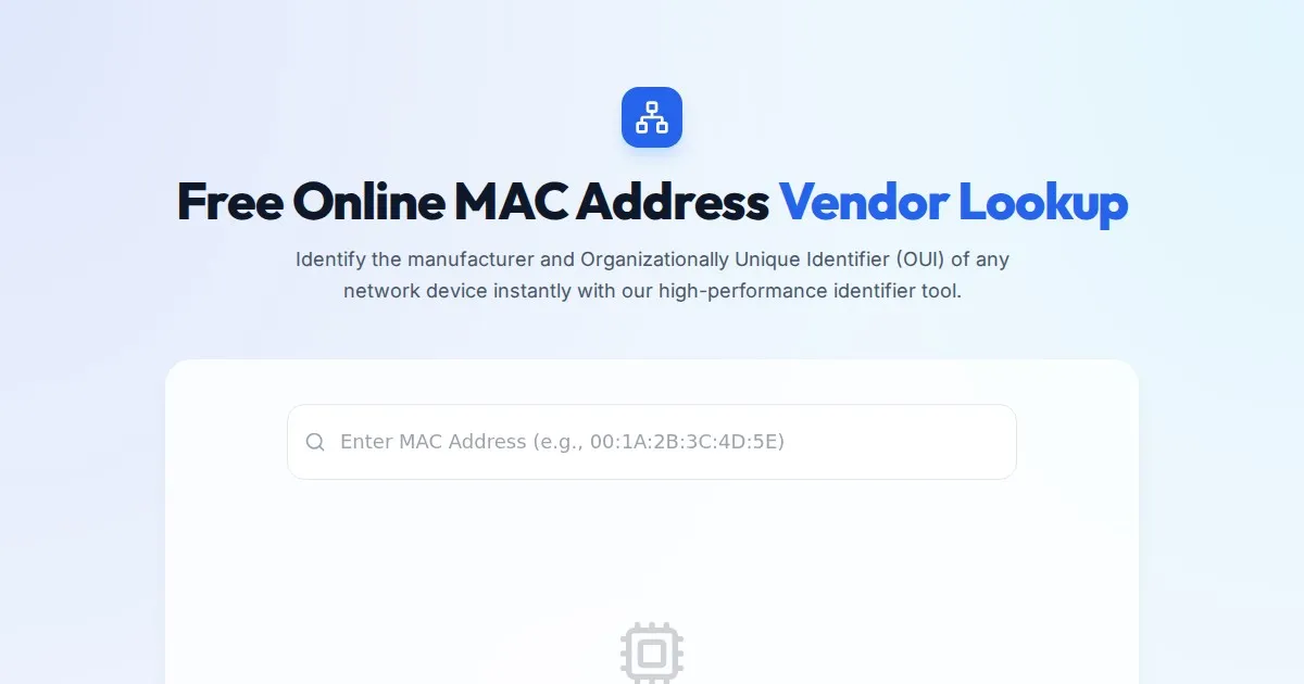 Instantly identify the manufacturer of any network device with our free online MAC address vendor lookup tool. Accurate, fast, and privacy-focused OUI search.