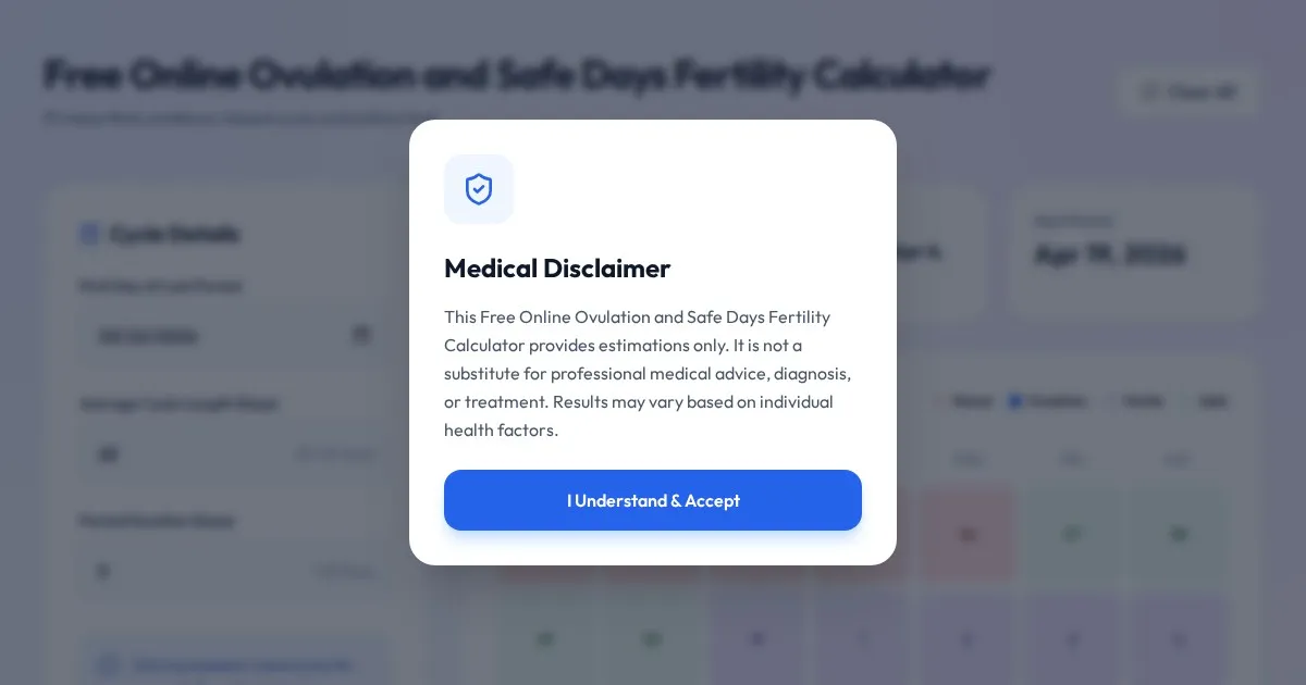 Calculate your fertile window and predicted ovulation date with our free online fertility calculator. Track your cycle, identify safe days, and plan effectively.