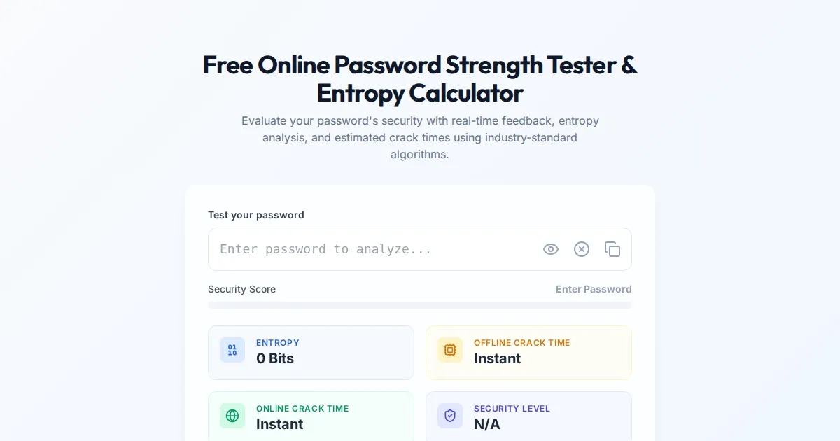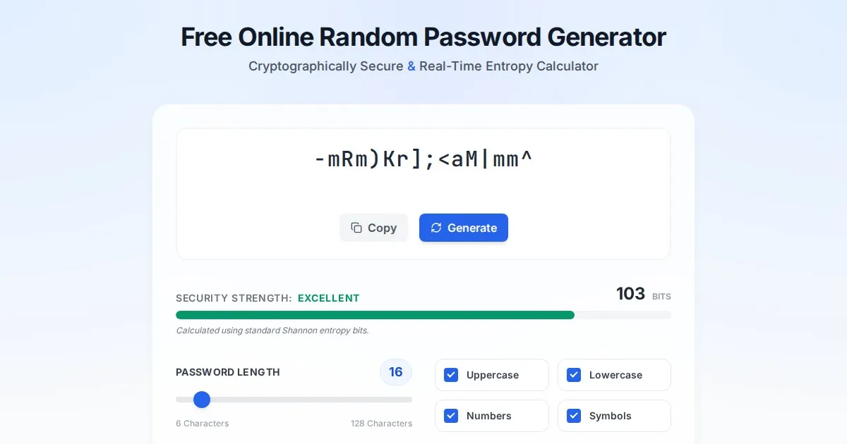 Generate cryptographically secure, high-entropy passwords instantly in your browser. Customize character sets and evaluate password strength with our free tool.