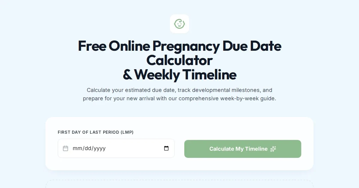Accurately calculate your estimated due date, view your current gestational age, and track your pregnancy milestones with our free, easy-to-use online tool.