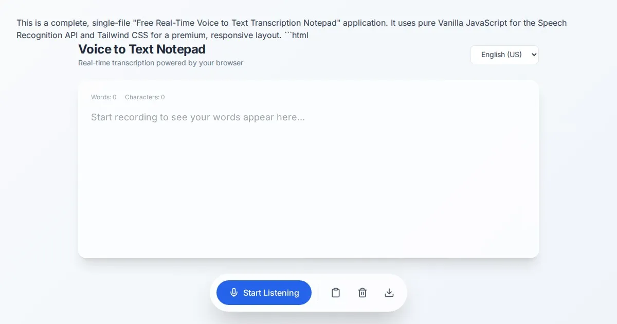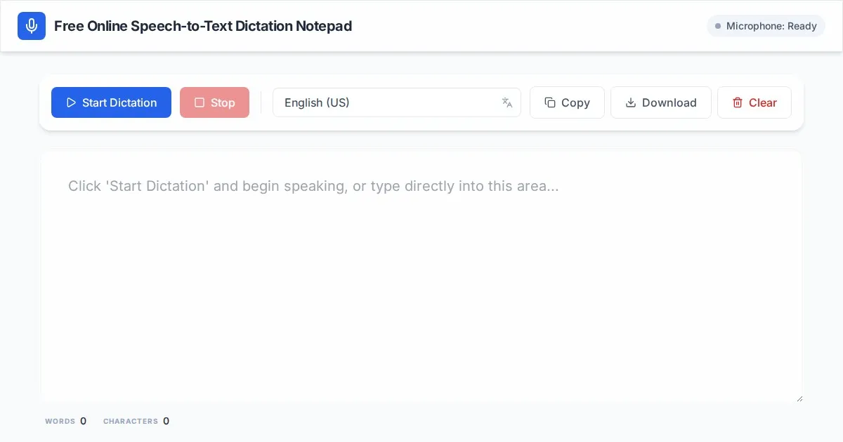 Use our free online speech-to-text dictation notepad to transcribe voice to text in real-time. Private, browser-based, and easy to use. No installation required.