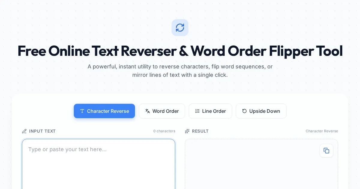Instantly convert your text with this free online tool. Flip letters upside down, reverse the word order, or create mirror text for social media captions.