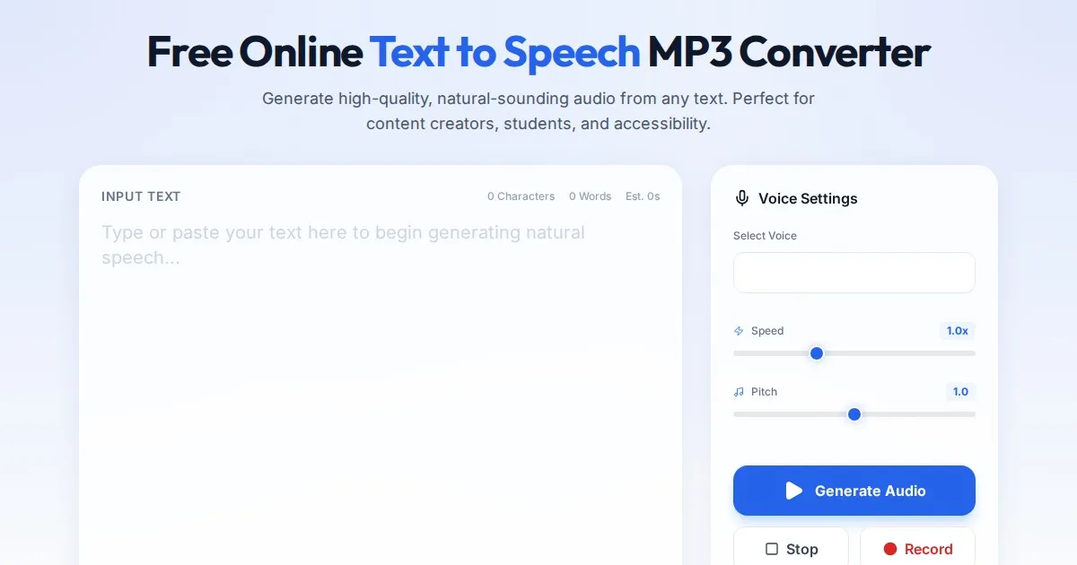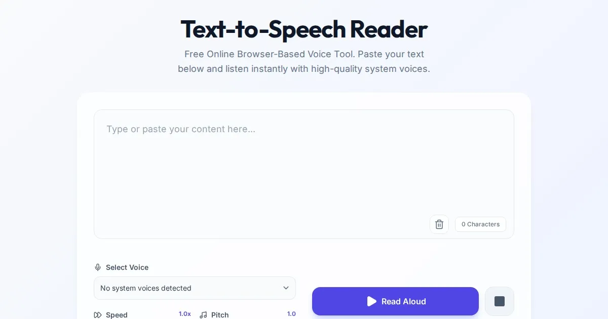 Convert any text into natural-sounding speech instantly with this free online text-to-speech reader. Works entirely in your browser with no installation.
