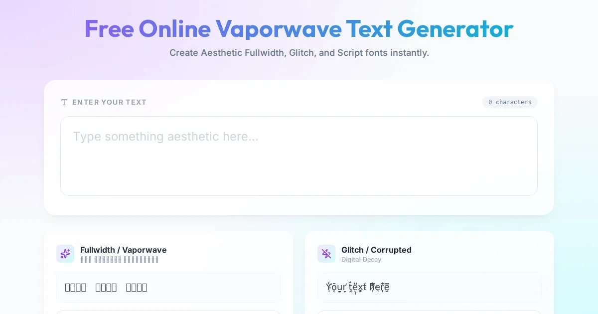 Instantly transform your text into Vaporwave style, fullwidth characters, and aesthetic fonts. Perfect for social media captions, creative design, and bios.