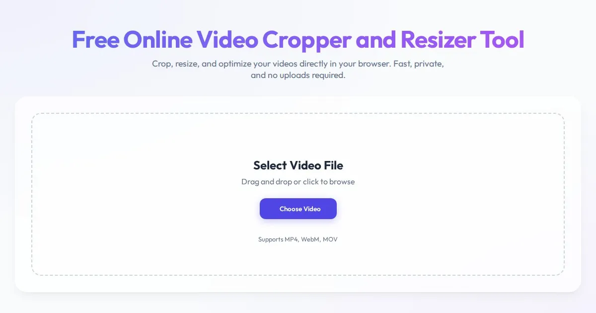 Edit videos instantly in your browser. Use our free online video cropper and resizer to change aspect ratios, crop dimensions, and export videos without uploads.