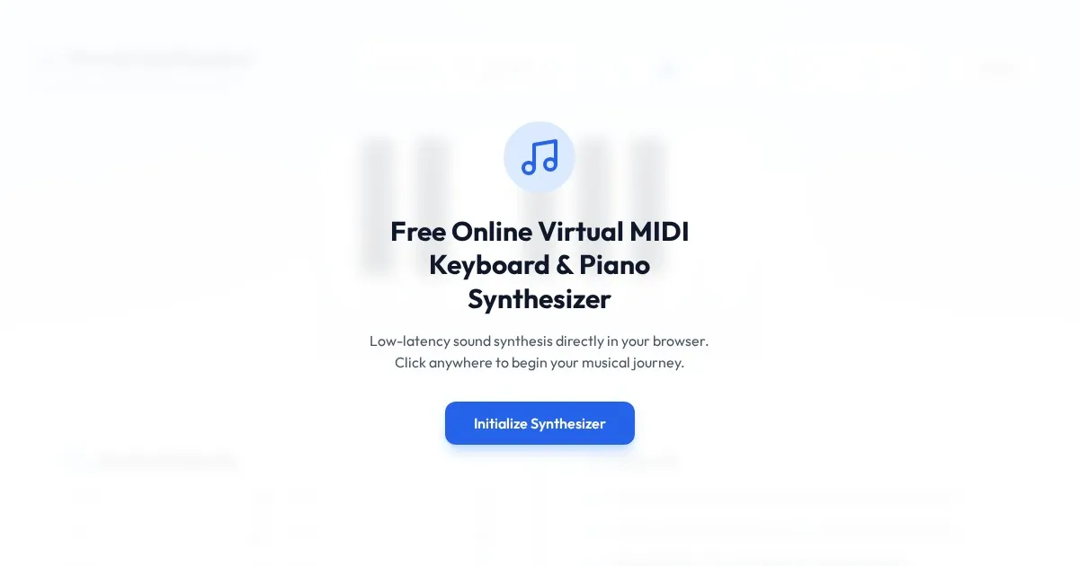 Play music online with this free virtual MIDI keyboard simulator. Features real-time sound synthesis, QWERTY key mapping, and customizable octave settings.