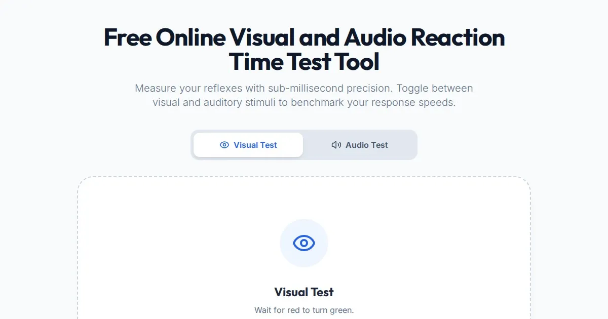 Measure your reflexes with this free, browser-based reaction time test. Compare your visual and audio response speeds instantly with precise millisecond accuracy.