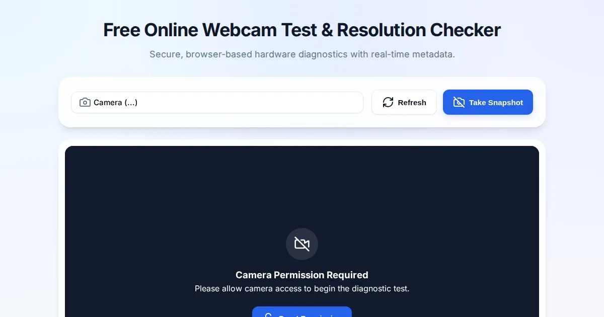 Test your webcam online instantly. Check camera resolution, frame rate, aspect ratio, and video quality in your browser without installing software.