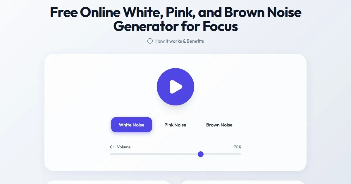Use our free, browser-based white, pink, and brown noise generator to improve concentration, mask distractions, and boost productivity. No download required.