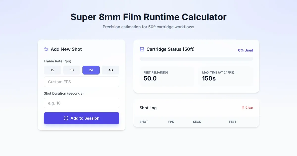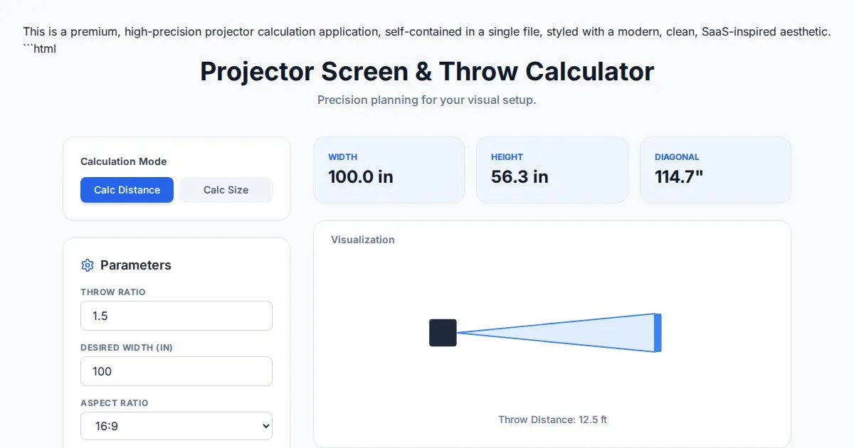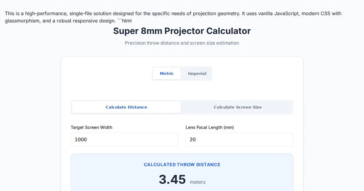 Calculate Super 8mm projector throw distance and screen size with this free, easy-to-use tool. Perfect for film collectors, home cinema setup, and analog enthusiasts.