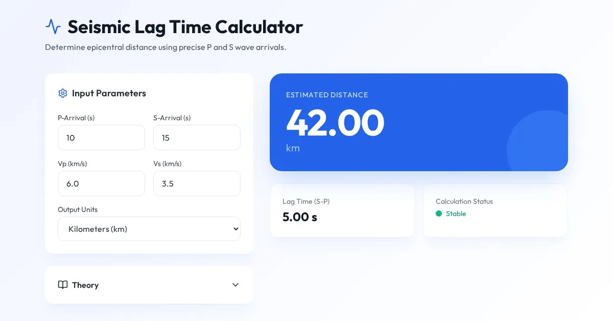 Accurately estimate earthquake epicentral distance using P-wave and S-wave arrival time differences. Fast, free, browser-based tool for geophysics students and researchers.