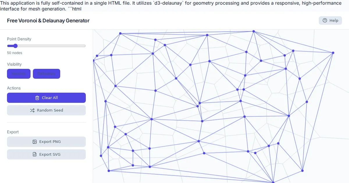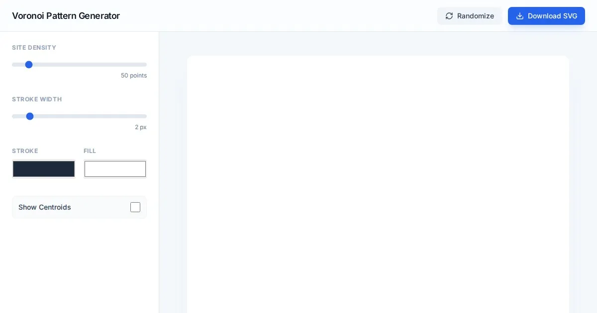 Instantly generate professional Voronoi diagrams and Delaunay triangulations with our free, browser-based tool. Perfect for designers, developers, and data visualization.