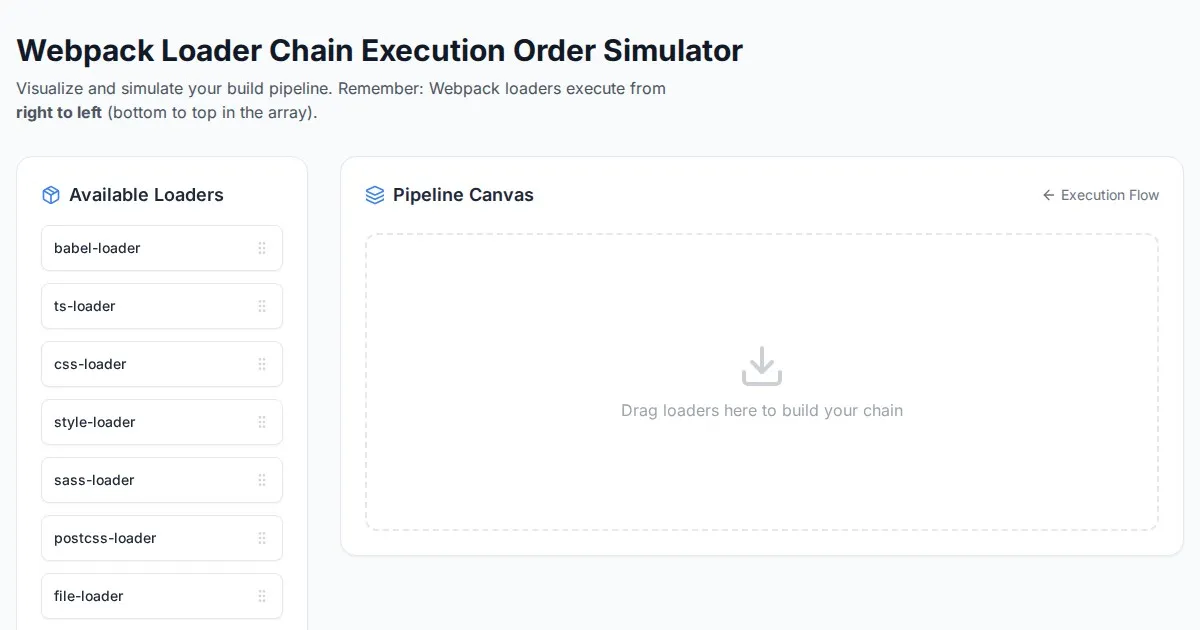 Visualize Webpack loader execution sequences in real-time. A free, browser-based tool to debug your Webpack config pipeline and loader order logic.